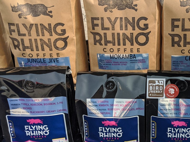 We sell whole or ground beans to take home that are thoughtfully roasted and blended by Flying Rhino Coffee, our decadent desserts are fresh baked by Vegan Taste, and we proudly carry Boochy Mama's Probiotic Tonics.